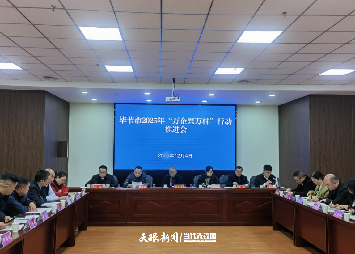 会议传达学习了全国“万企兴万村”行动推进会精神,通报了全市2025年“万企兴万村”行动推进情况。毕节市农业农村局、农业银行毕节分行、农业发展银行毕节分行等3家市领导小组成员单位及织金县、纳雍县领导小组作了工作开展情况汇报。